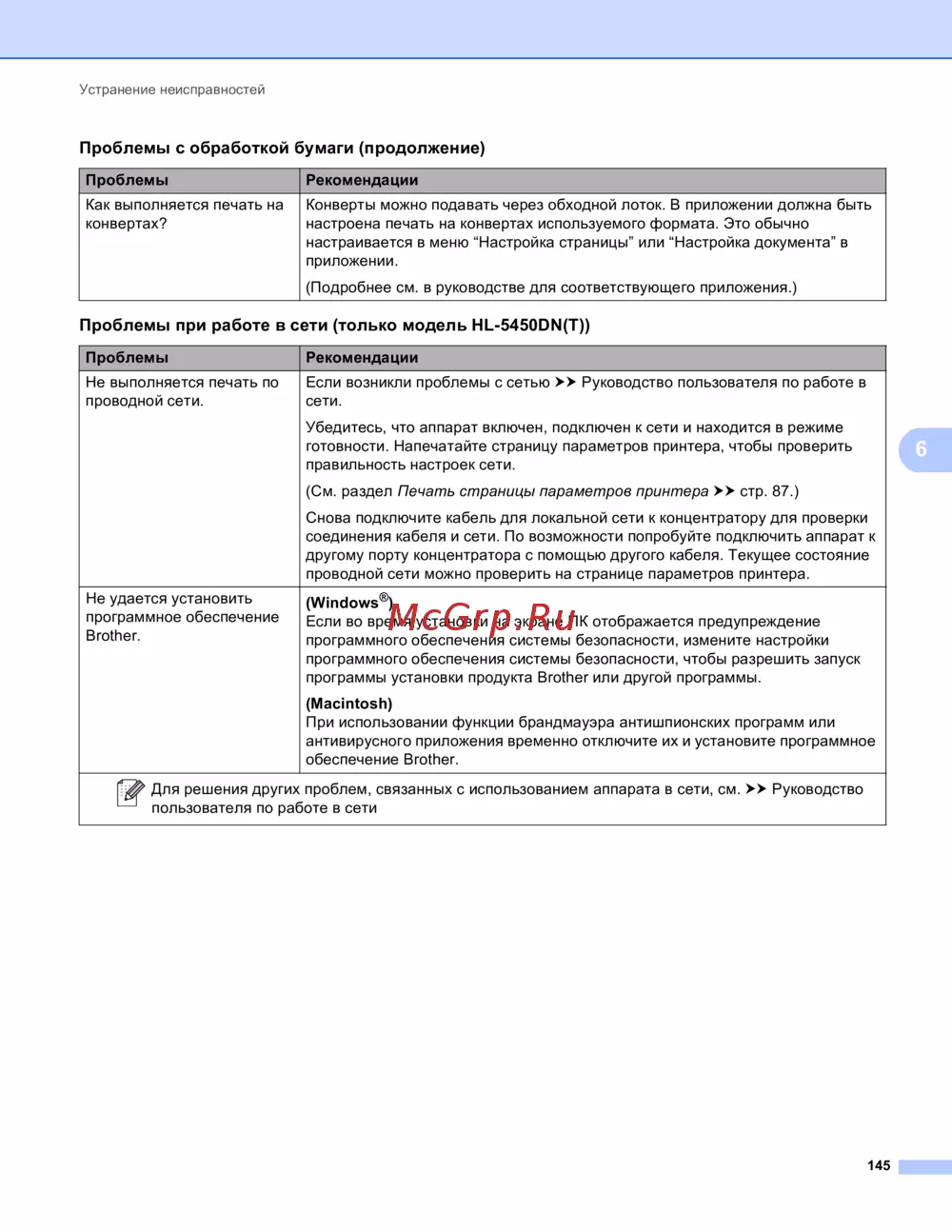 Brother HL-5450DN — устранение неисправностей при печати на конвертах и в сети [151/172]
