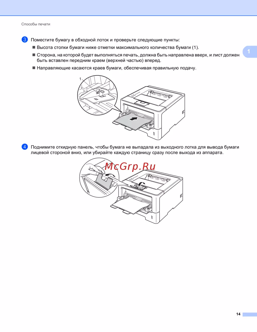 - Печать на обычной бумаге тонкой бумаге или бумаге из вторсырья из лотка 1 и лотка p.15