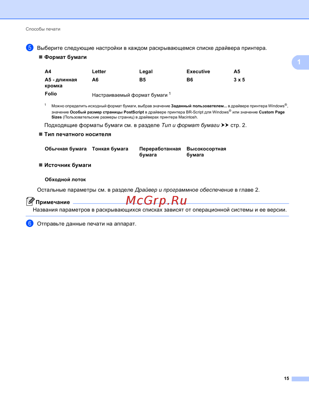 - Печать на обычной бумаге тонкой бумаге или бумаге из вторсырья из лотка 1 и лотка p.15