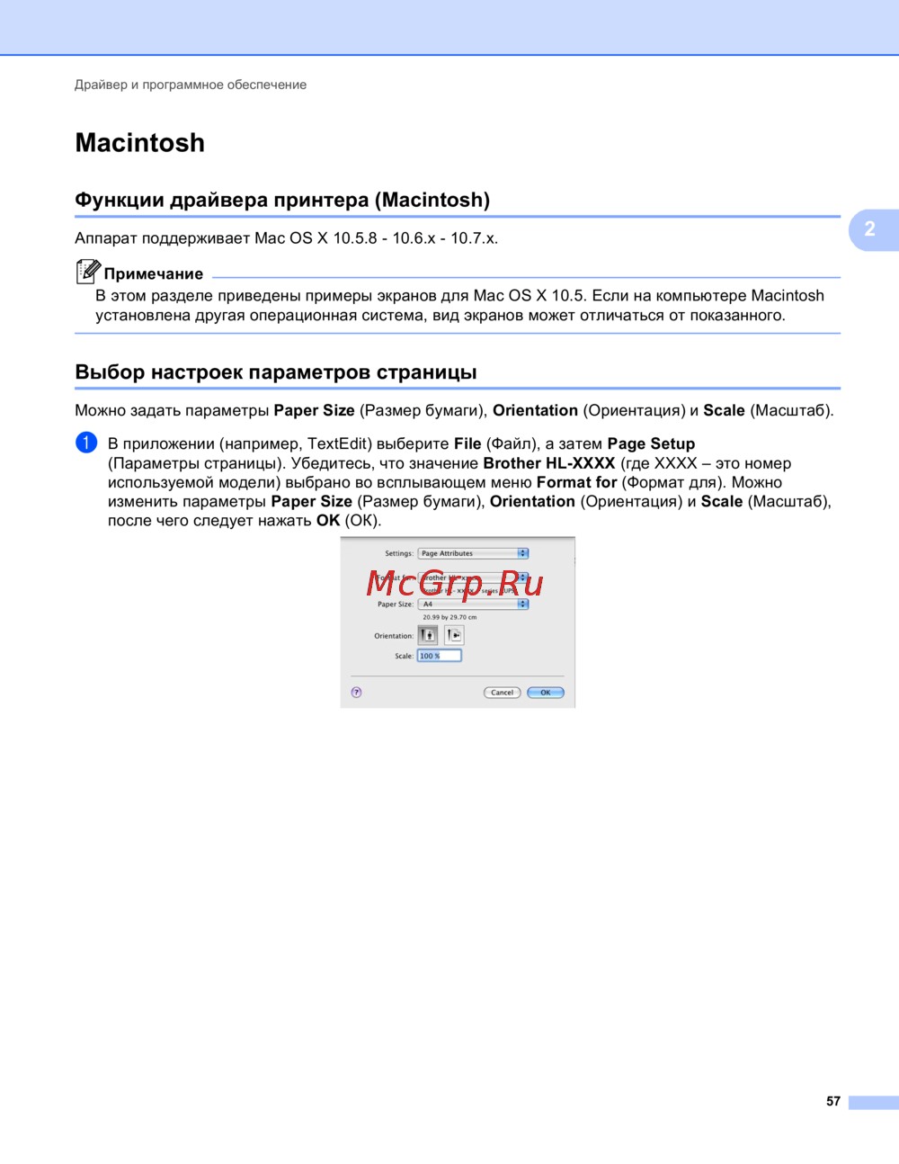Узнайте, как правильно настроить драйвер принтера на Macintosh, включая выбор размера бумаги, ориентации и масштаба. Подробные инструкции для разных версий Mac OS.