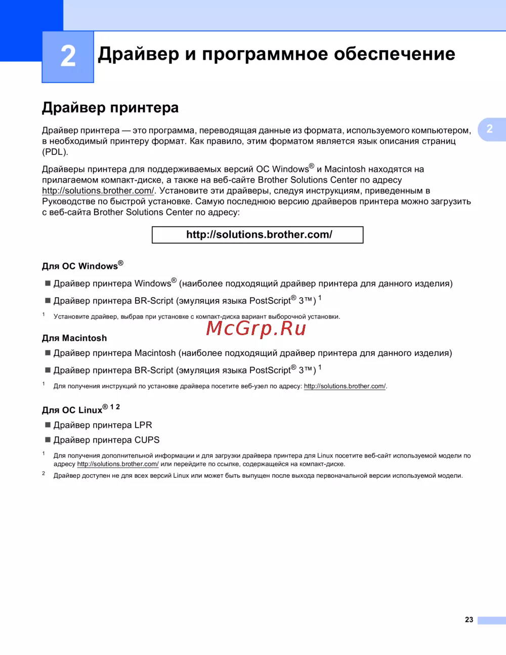 http://solutions.brother.com/. Установите эти драйверы, следуя инструкциям, приведенным в