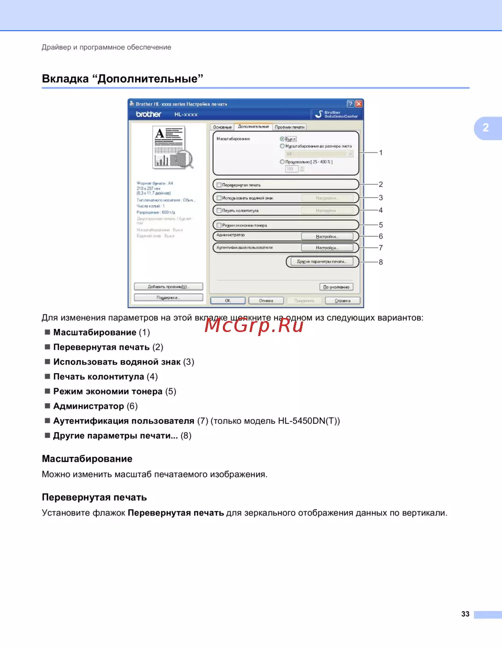 - Остальные параметры см в разделе драйвер и программное обеспечение в главе 2 p.18