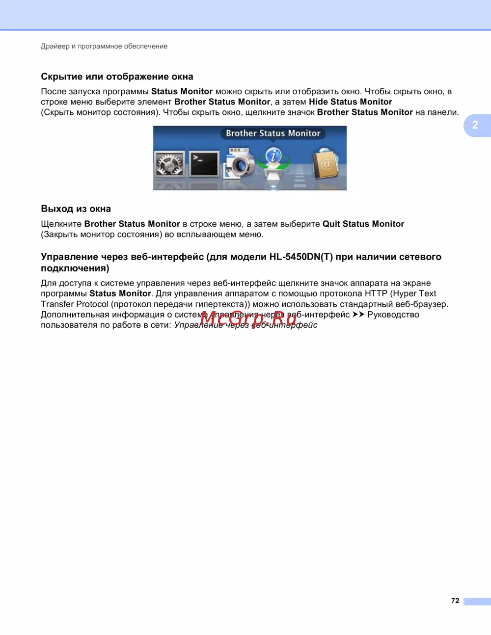 (Скрыть монитор состояния). Чтобы скрыть окно, щелкните значок Brother Status Monitor на панели.