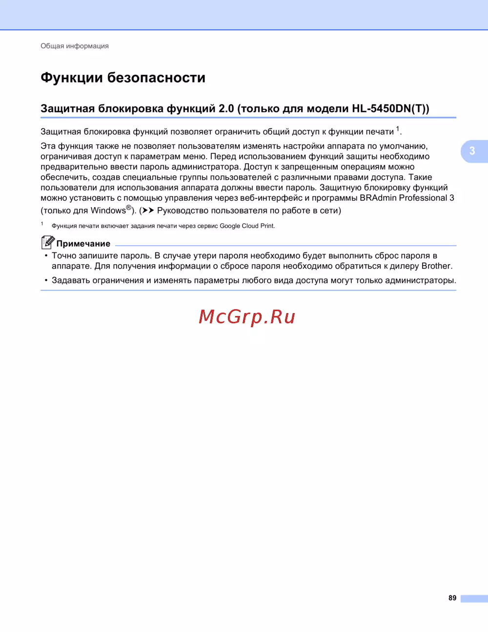 Защитная блокировка функций 2.0 (только для модели HL-5450DN(T)) 3