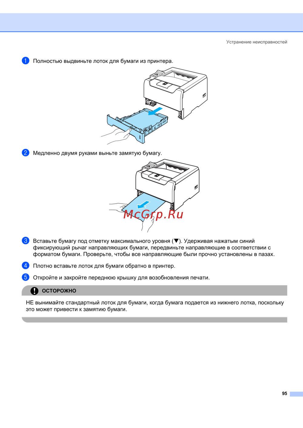 НЕ вынимайте стандартный лоток для бумаги, когда бумага подается из нижнего лотка, поскольку