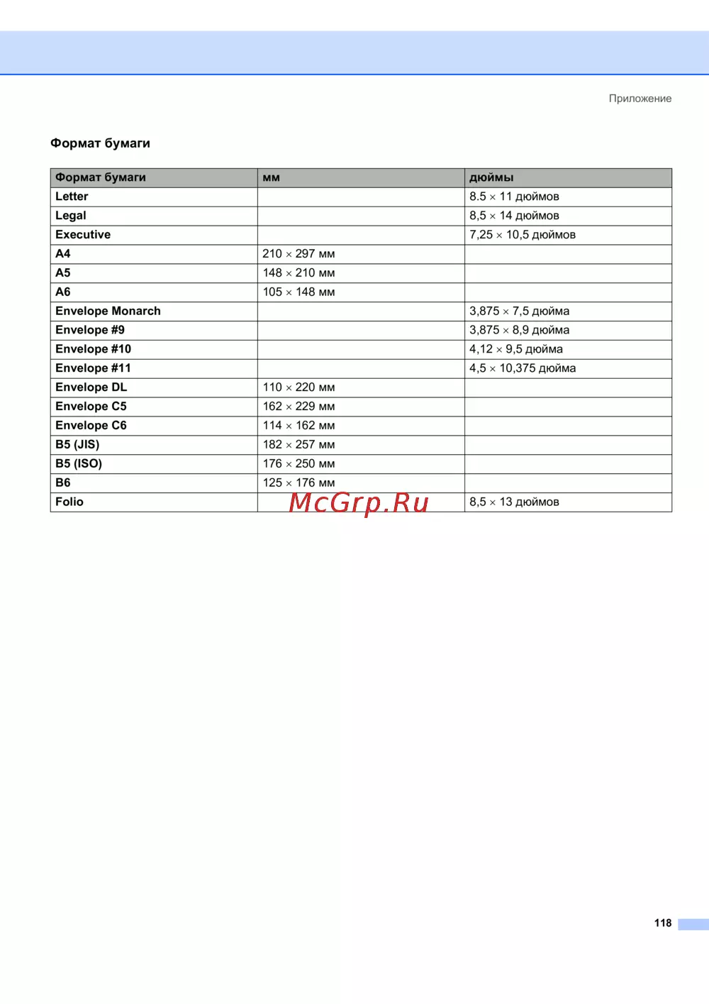 ![Brother HL-5270DN [126/144] Формат бумаги](/views2/1118226/page126/bg7e.png)