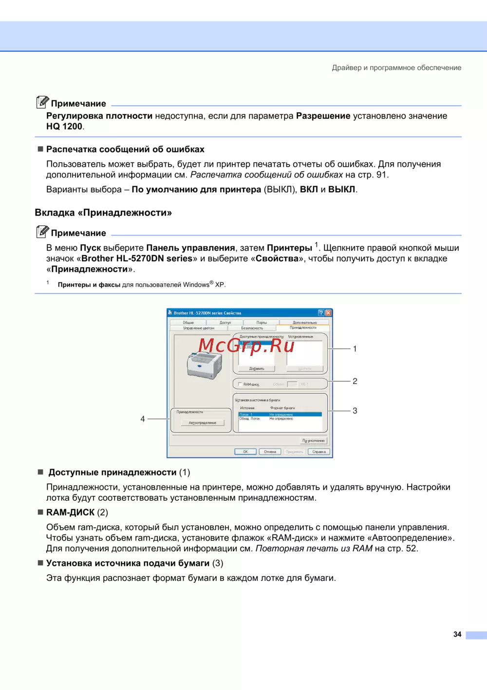 значок «Brother HL-5270DN series» и выберите «Свойства», чтобы получить доступ к вкладке