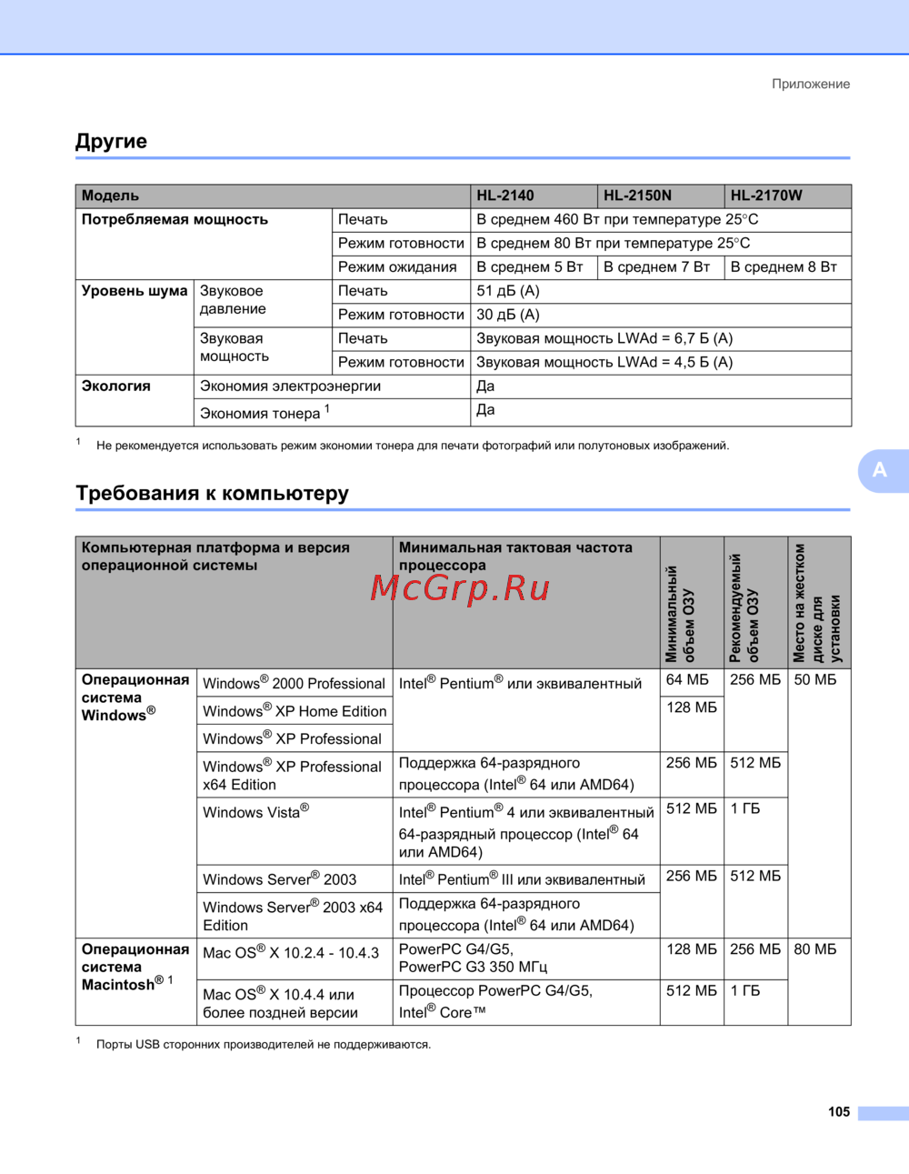 Brother HL-2150NR [112/133] Требования к компьютеру