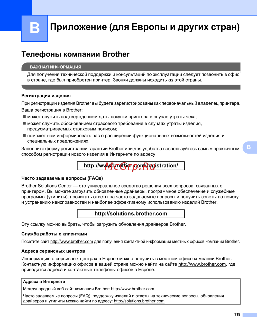 Brother HL-2150NR — техническая поддержка и регистрация принтеров: важная информация [126/133]
