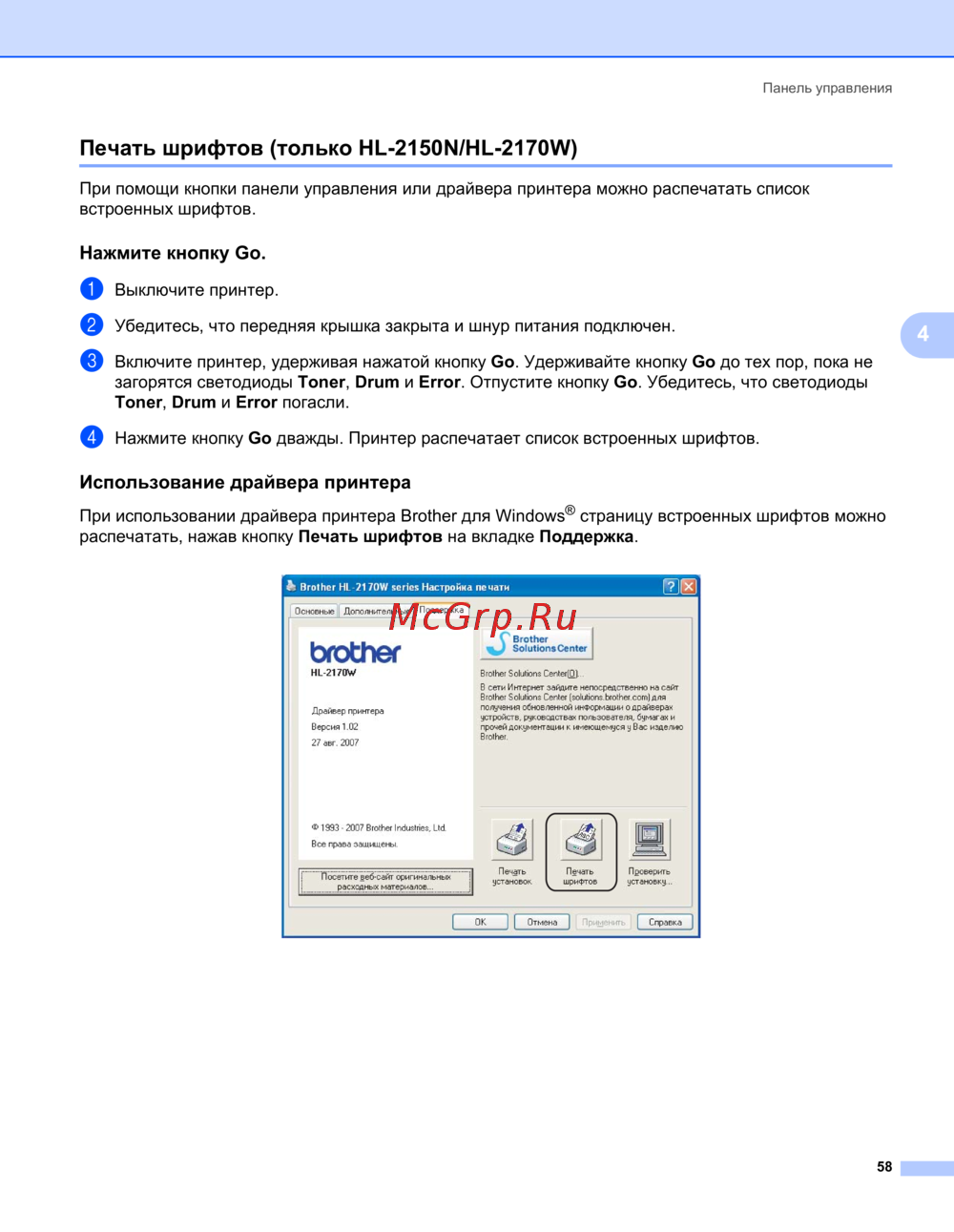 Печать шрифтов (только HL-2150N/HL-2170W) 4