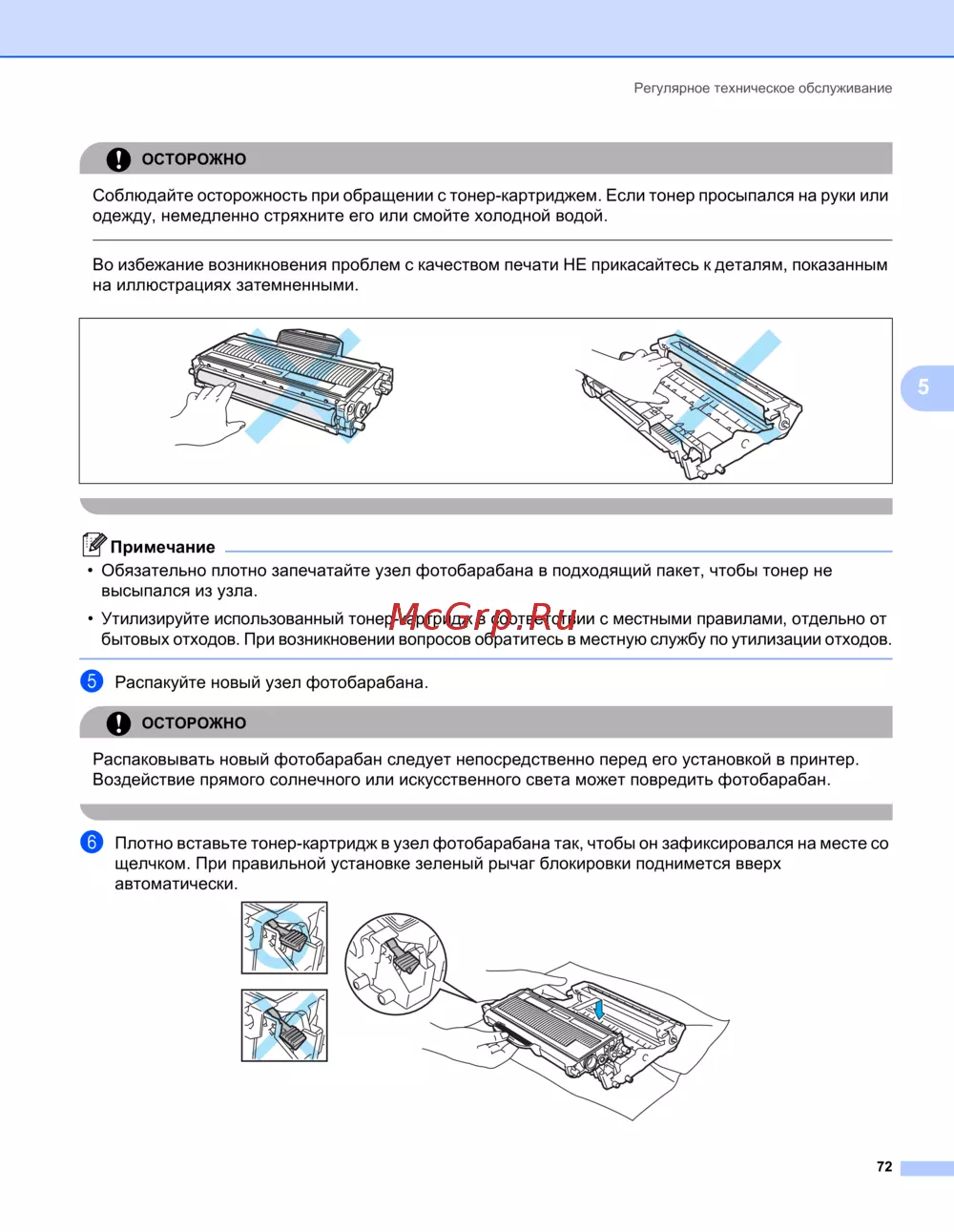 • Утилизируйте использованный тонер-картридж в соответствии с местными правилами, отдельно от