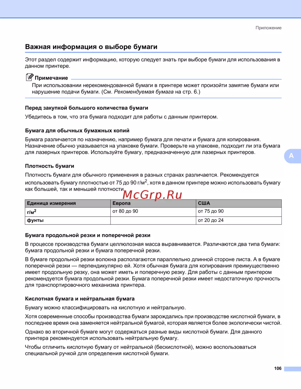 Плотность бумаги для обычного применения в разных странах различается. Рекомендуется
