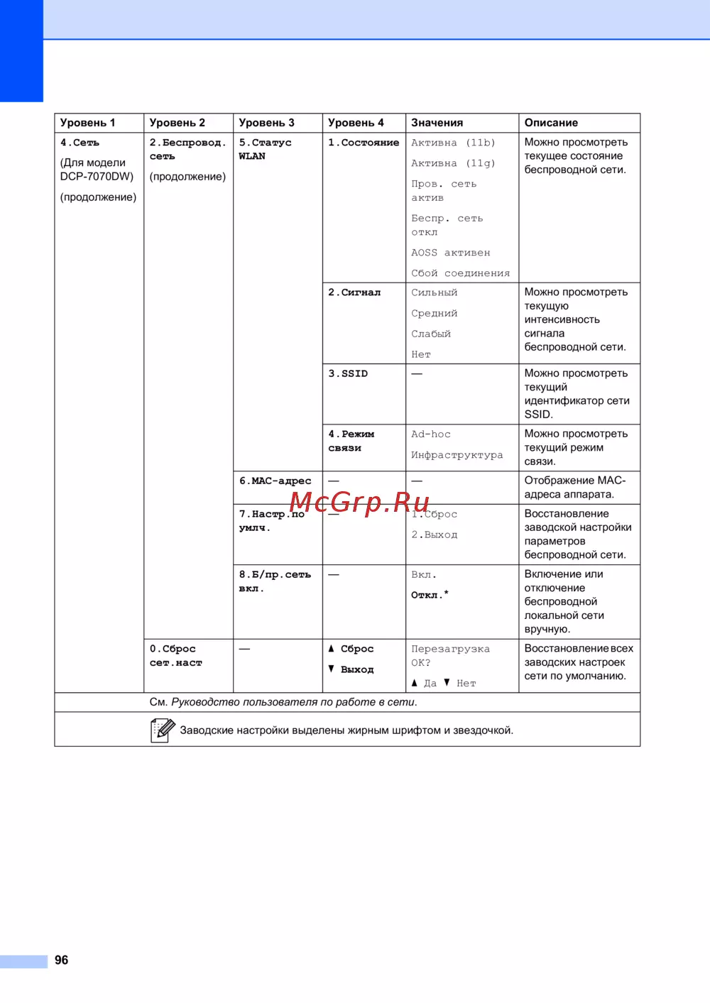 Brother DCP-7057WR — настройки беспроводной сети: управление и диагностика [104/124]