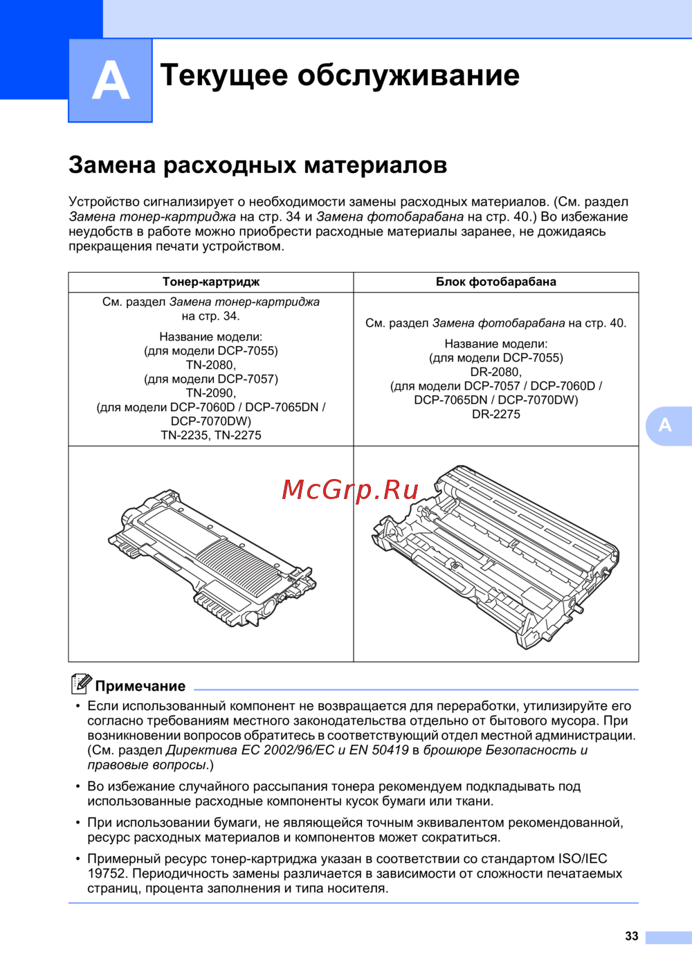 Brother DCP-7057WR — информация о замене расходных материалов для печатающих устройств [41/124]
