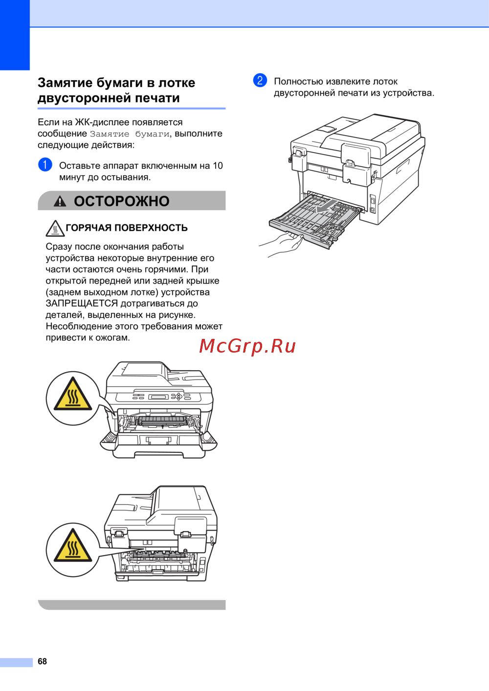- Замятие документа в выходном лотке для модели dcp 7065dn p.68
