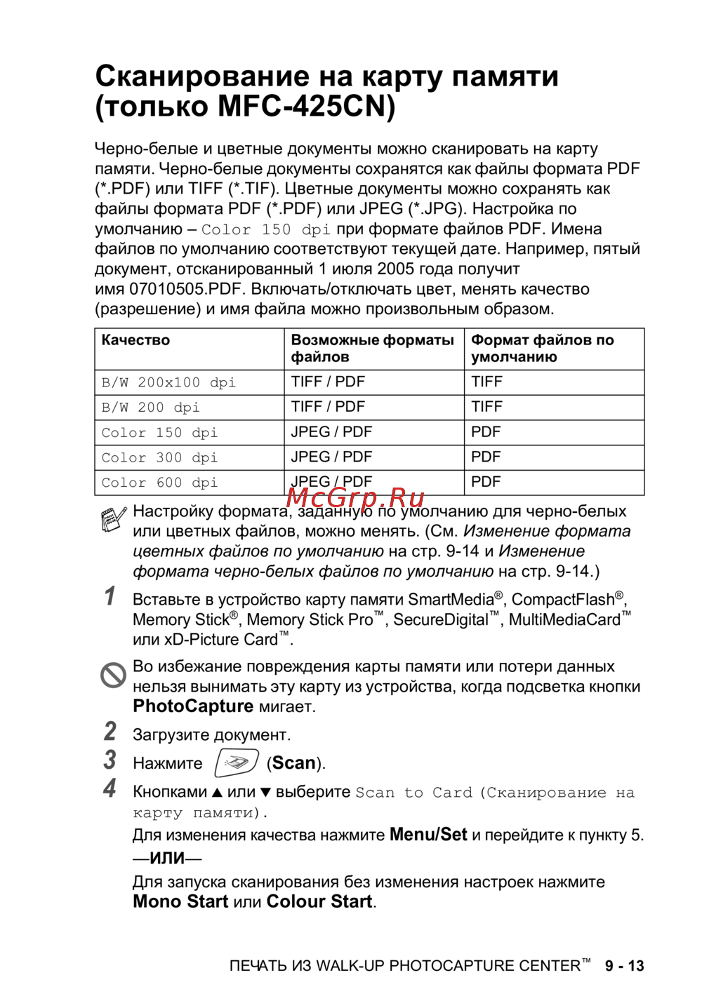 Brother MFC-425CN [115/202] Сканирование на карту памяти только mfc 425cn