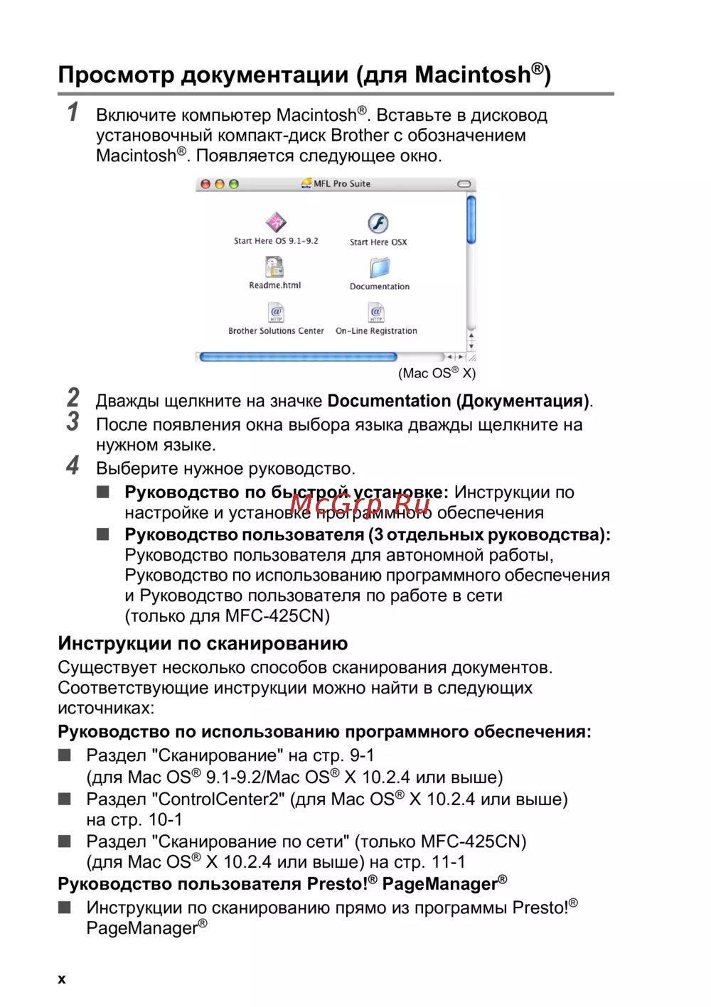 Brother MFC-425CN — инструкции по установке и сканированию для Macintosh [12/202]