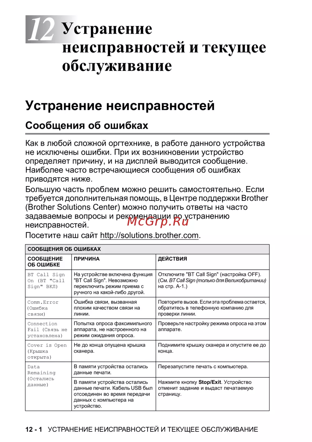 Brother MFC-425CN [124/202] Устранение неисправностей и текущее обслуживание
