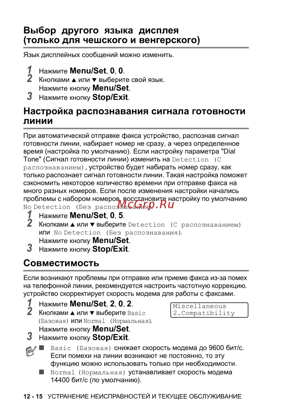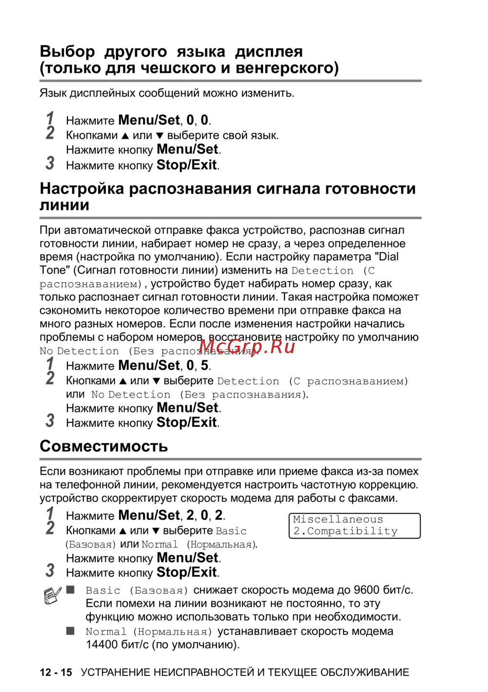 12 - 15 УСТРАНЕНИЕ НЕИСПРАВНОСТЕЙ И ТЕКУЩЕЕ ОБСЛУЖИВАНИЕ