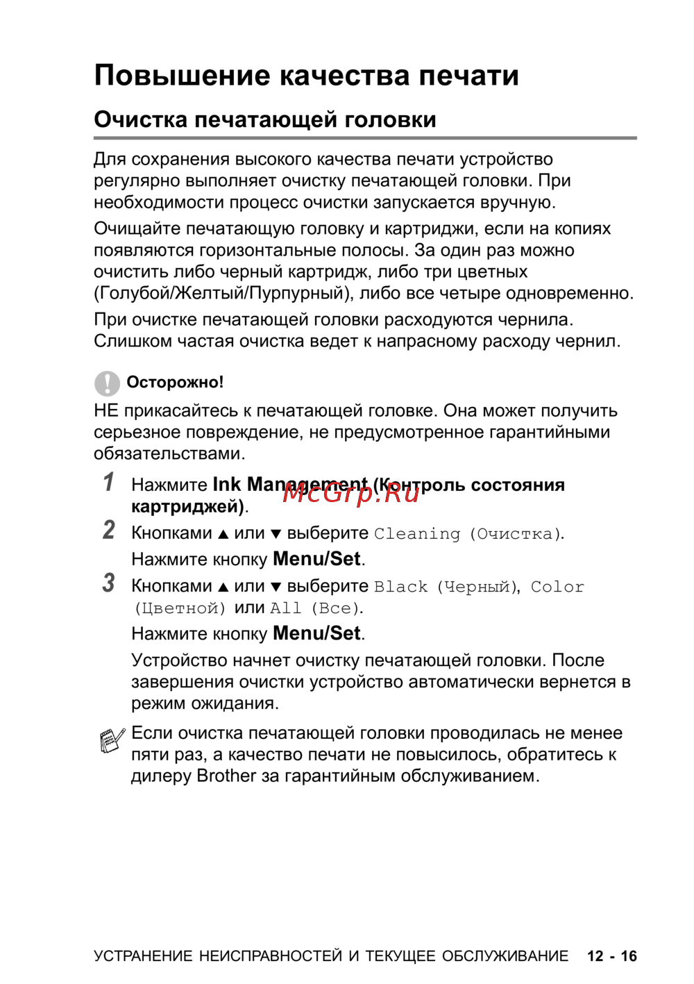 Узнайте, как повысить качество печати и правильно очищать печатающую головку. Следуйте инструкциям для эффективного обслуживания вашего устройства.