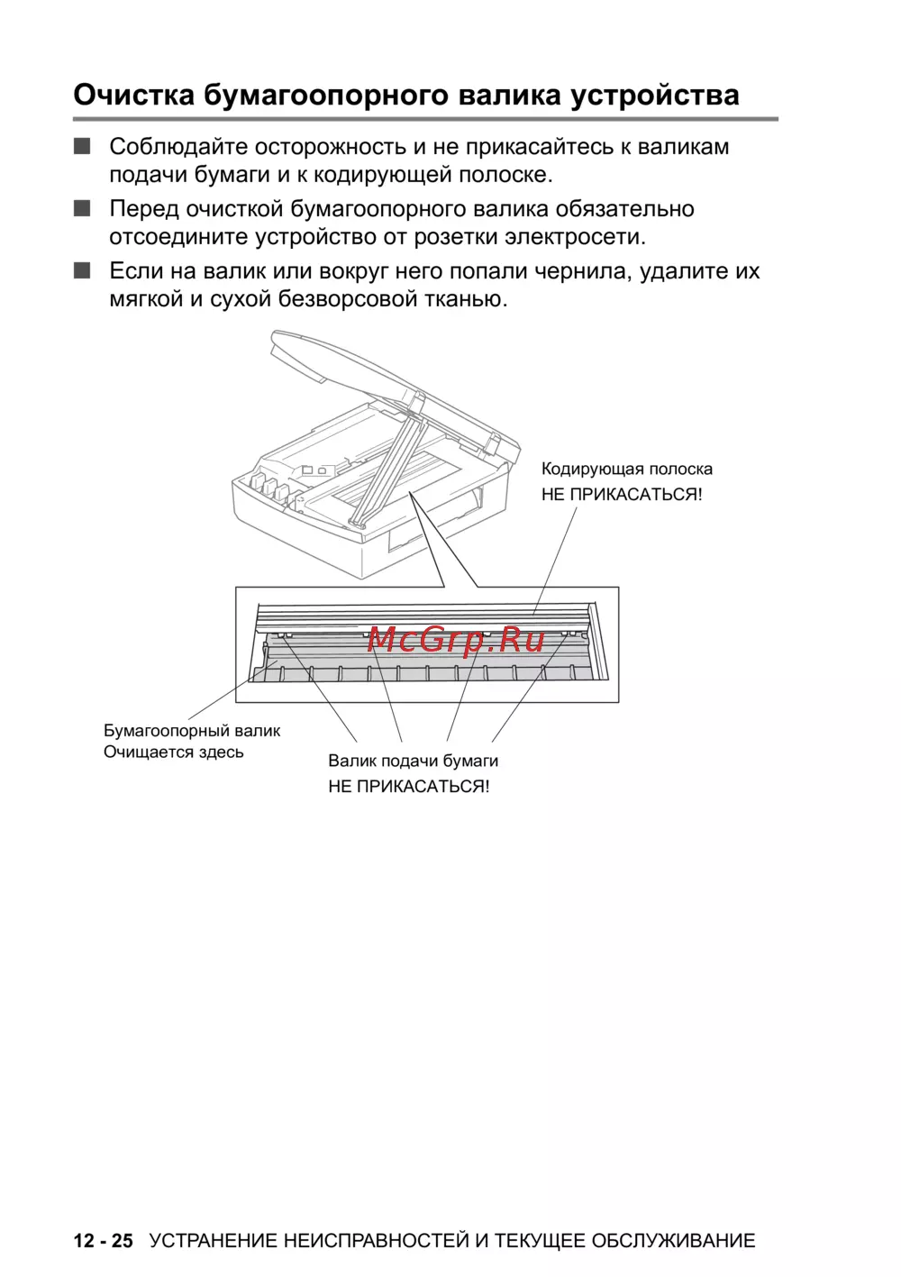 ■ Перед очисткой бумагоопорного валика обязательно