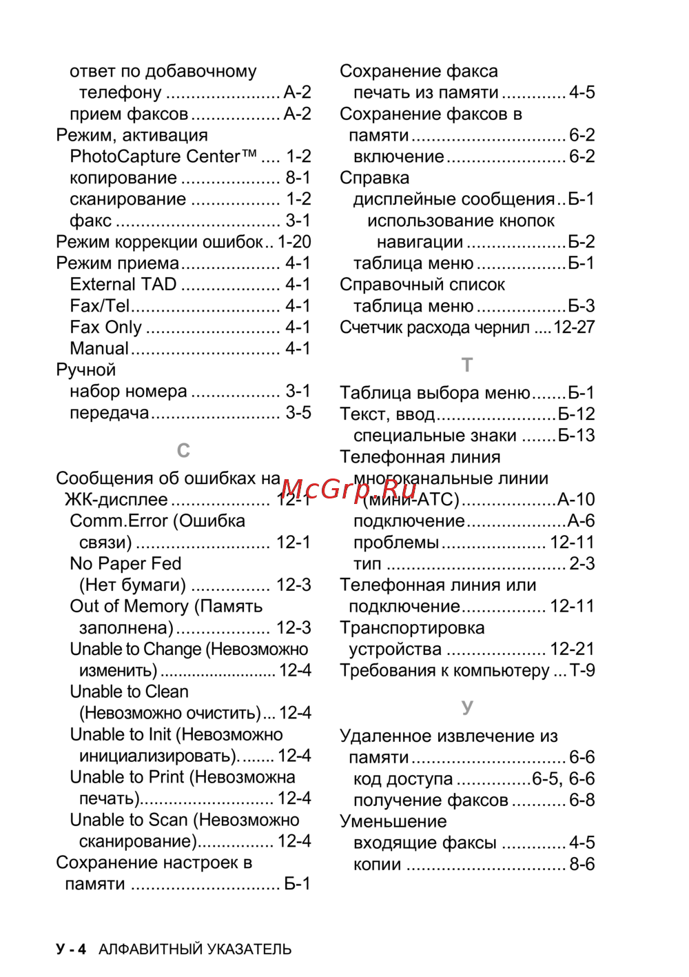 Brother MFC-425CN — алфавитный указатель и справочная информация по устройству [196/202]