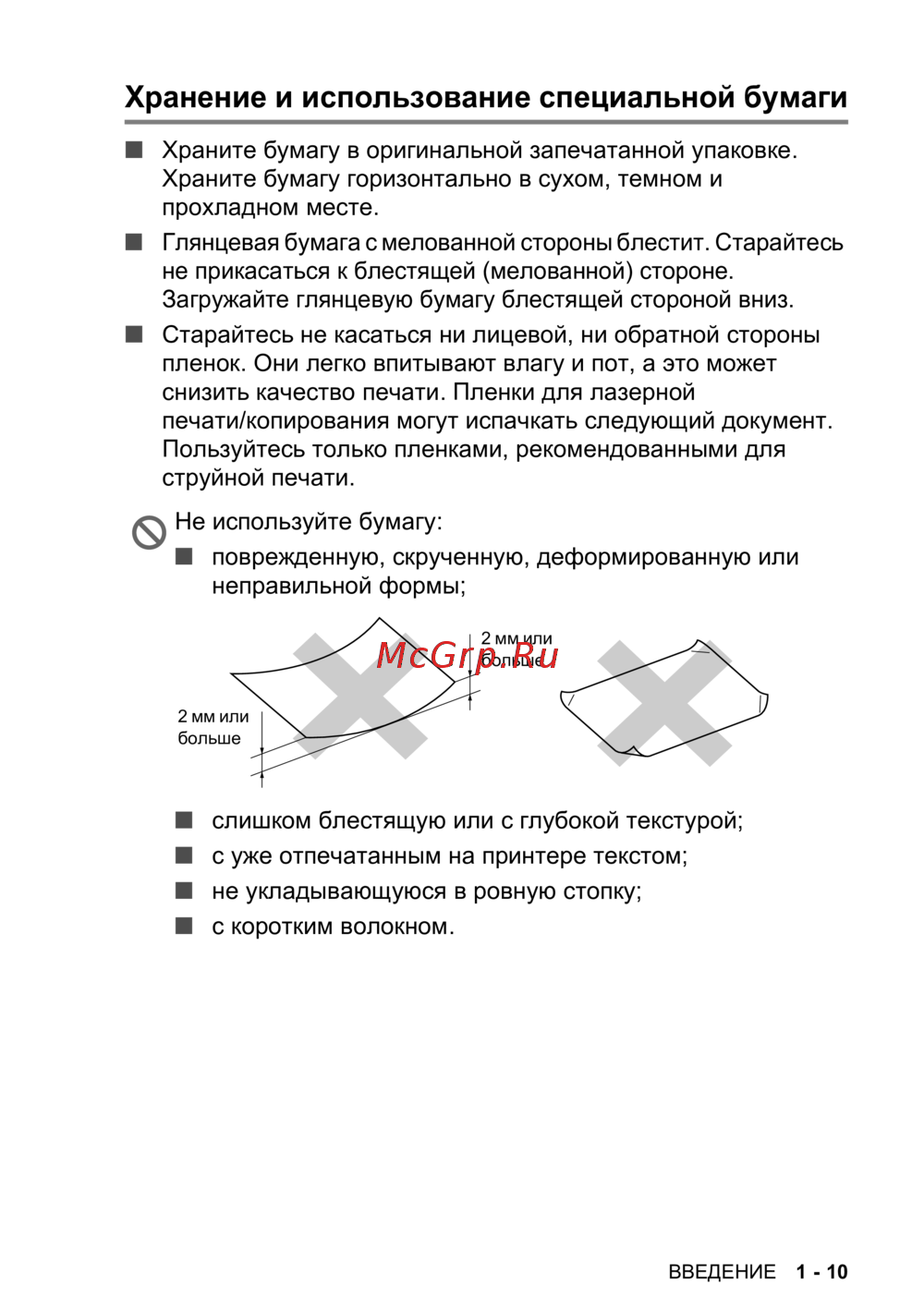 - Хранение и использование специальной бумаги p.29