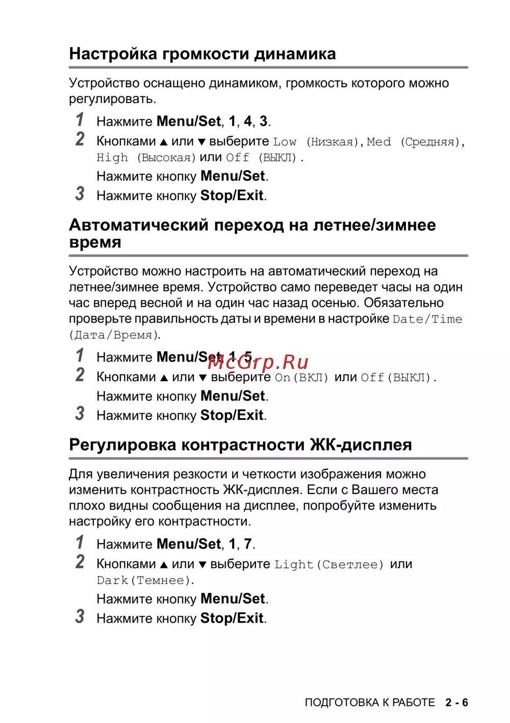 Brother MFC-425CN — настройка громкости и контрастности устройства: пошаговое руководство [45/202]