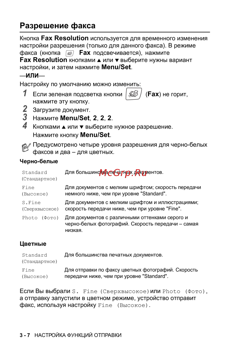Brother MFC-425CN — настройка функций отправки факсов: разрешение и параметры [52/202]
