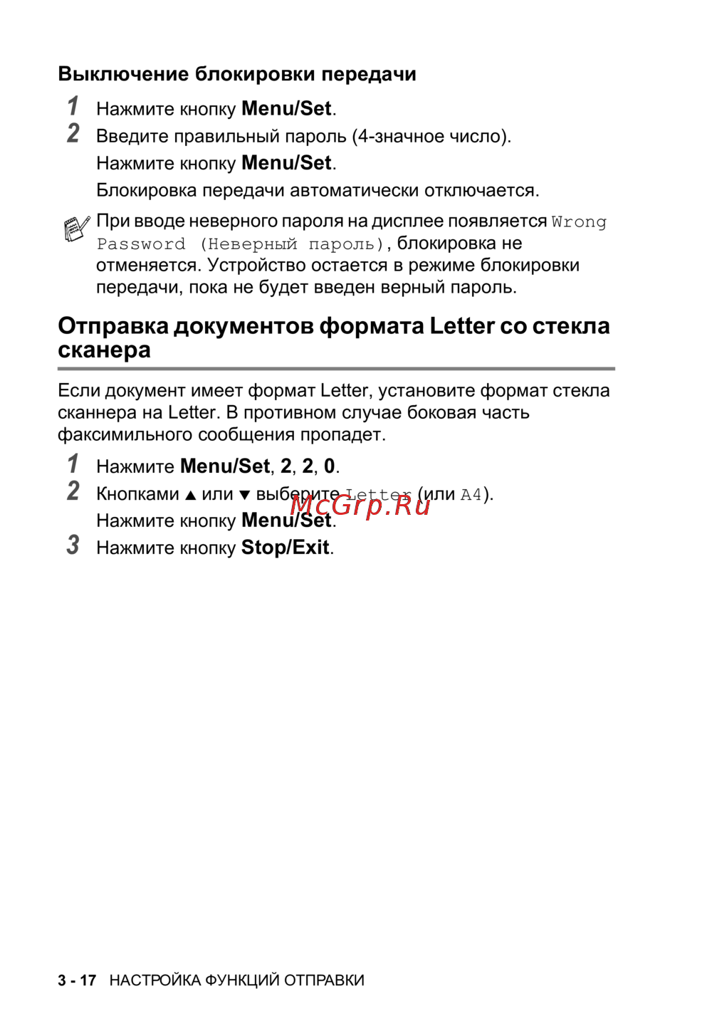 3 - 17 НАСТРОЙКА ФУНКЦИЙ ОТПРАВКИ