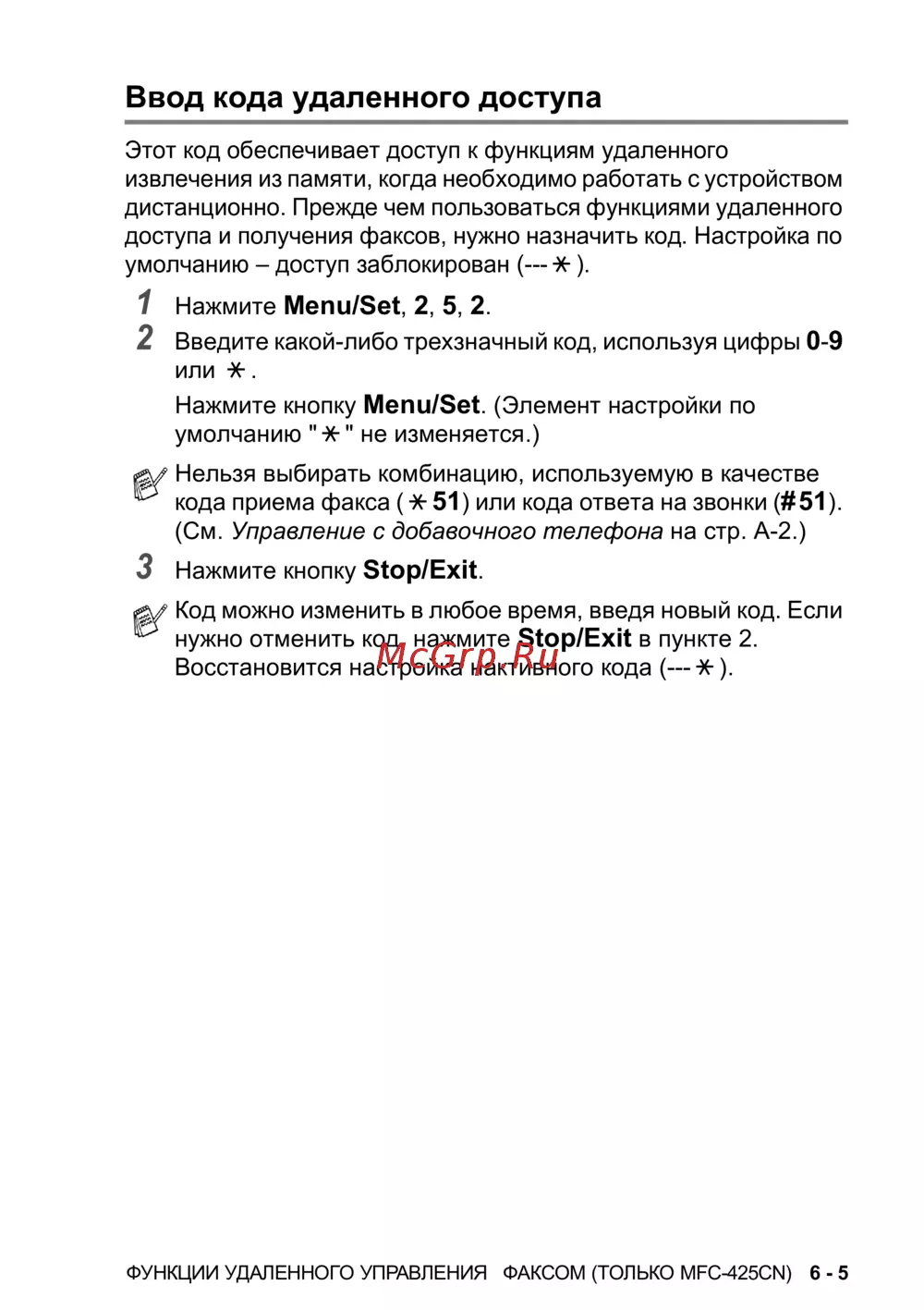 ФУНКЦИИ УДАЛЕННОГО УПРАВЛЕНИЯ ФАКСОМ (ТОЛЬКО MFC-425CN) 6 - 5