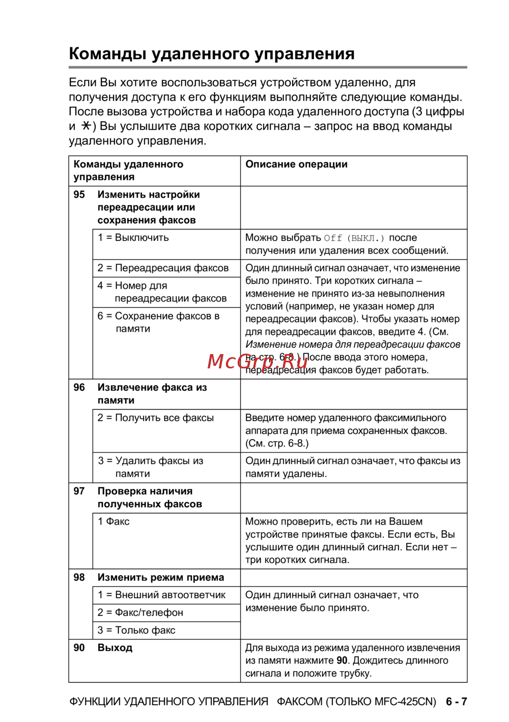 ФУНКЦИИ УДАЛЕННОГО УПРАВЛЕНИЯ ФАКСОМ (ТОЛЬКО MFC-425CN) 6 - 7