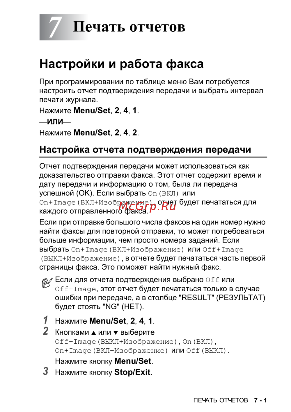 Brother MFC-425CN — настройка печати отчетов факса: инструкция и руководство [85/202]