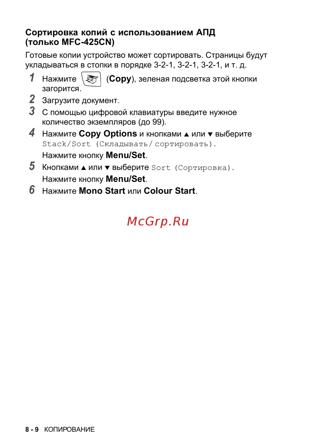 Brother MFC-425CN [96/202] Сортировка копий с использованием апд только mfc 425cn