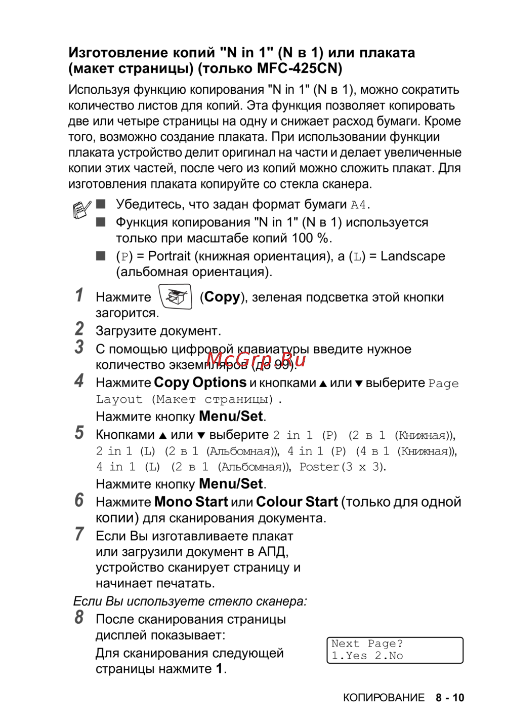 Brother MFC-425CN [97/202] Изготовление копий n in 1 n в 1 или плаката макет страницы только mfc 425cn