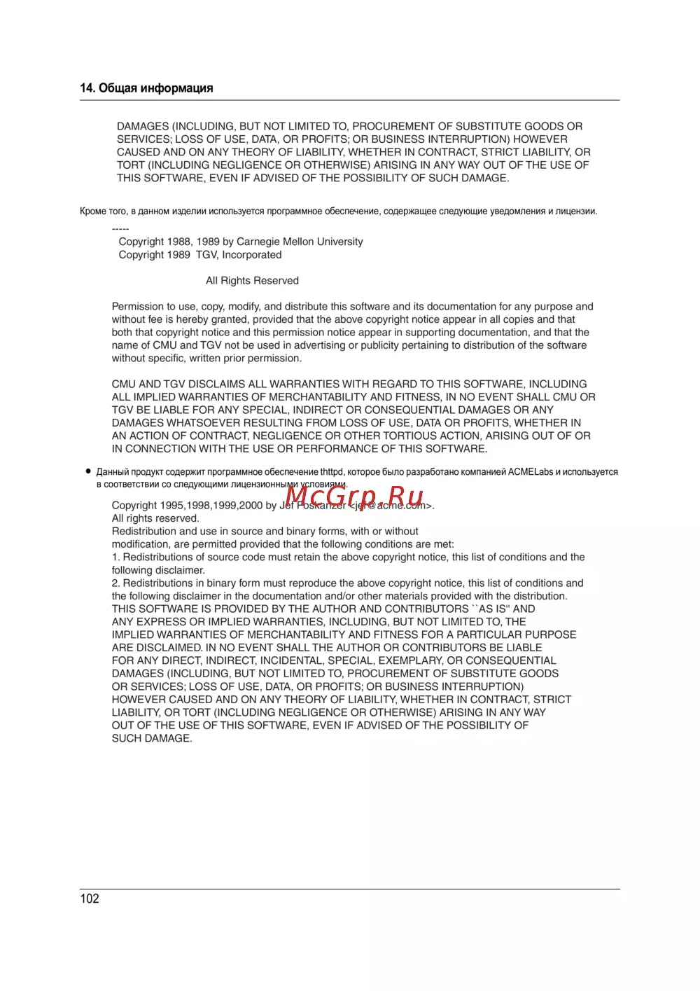 Данный продукт содержит программное обеспечение thttpd, которое было разработано компанией ACMELabs и используется