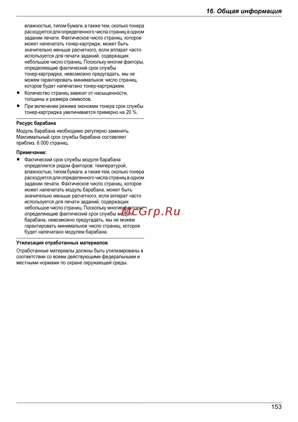 Panasonic KX-MB2061 RU — факторы, влияющие на срок службы тонера и барабана печати [153/172]
