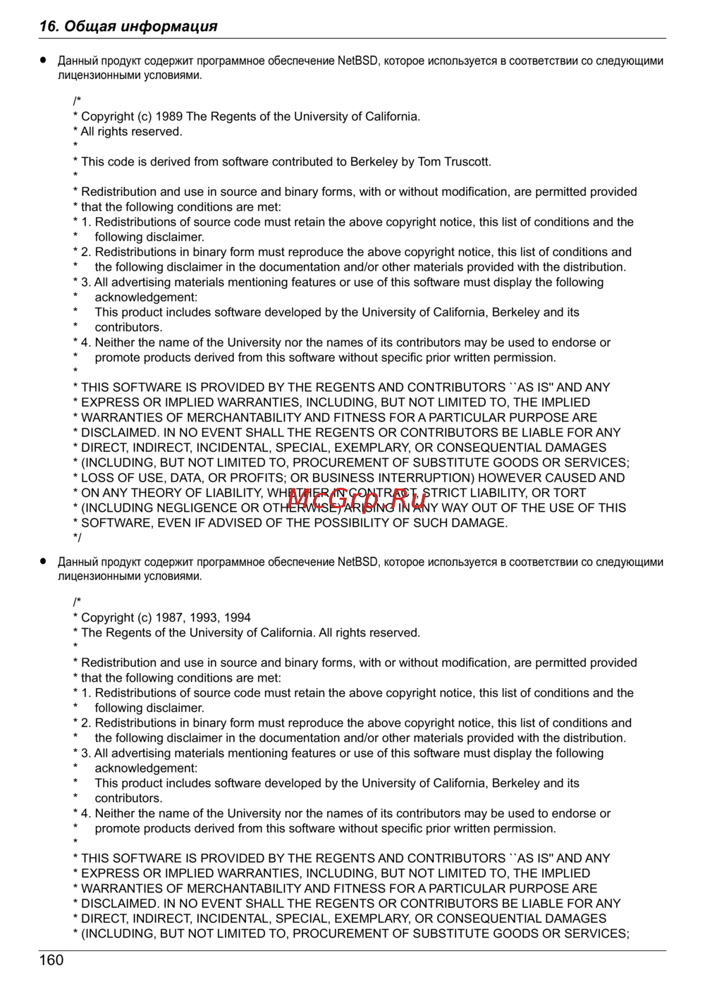 R Данный продукт содержит программное обеспечение NetBSD, которое используется в соответствии со следующими