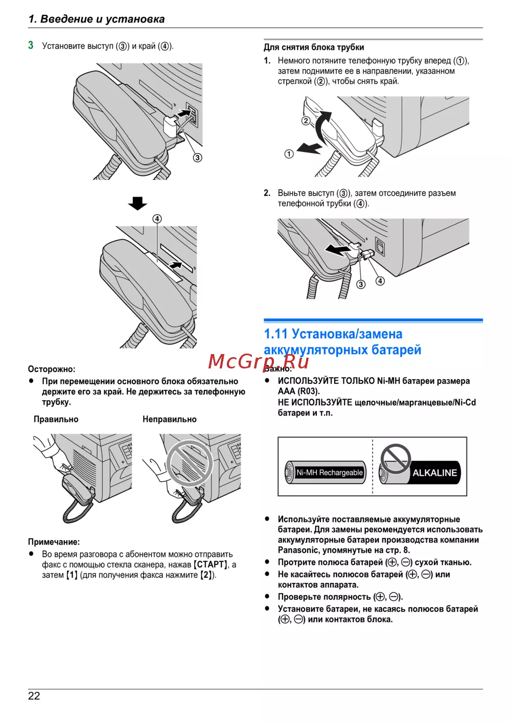 Panasonic KX-MB2061 RU — инструкция по установке и замене аккумуляторов для устройств [22/172]