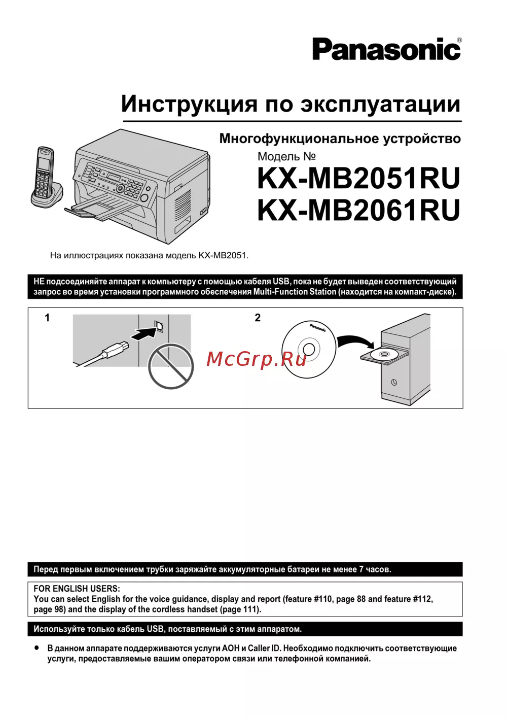 Panasonic KX-MB2051 RU — инструкция по эксплуатации многофункционального устройства [1/172]