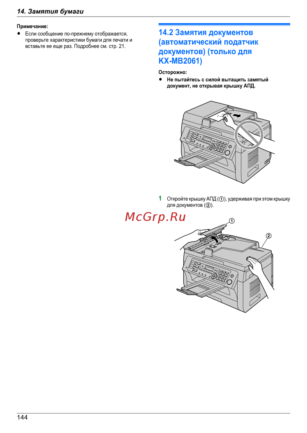 Panasonic KX-MB2051 RU [144/172] Замятия документов автоматический податчик документов только для kx mb2061