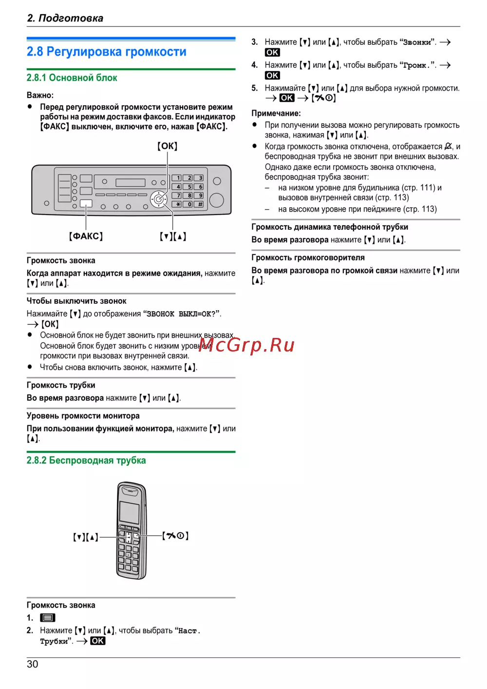 Panasonic KX-MB2051 RU — регулировка громкости звонка и трубки: пошаговое руководство [30/172]
