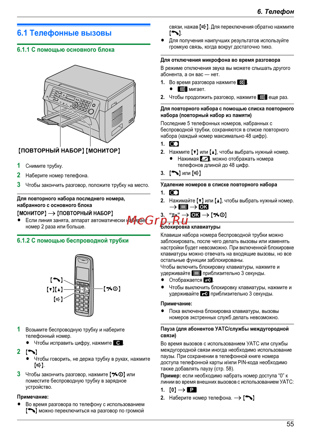 6.1.2 С помощью беспроводной трубки