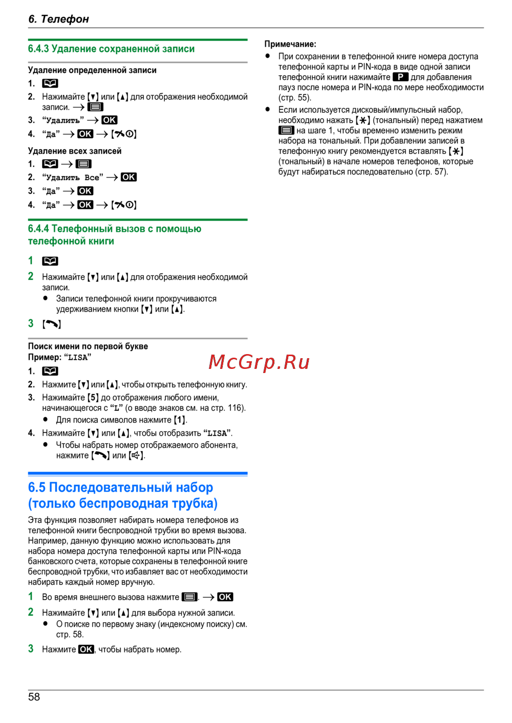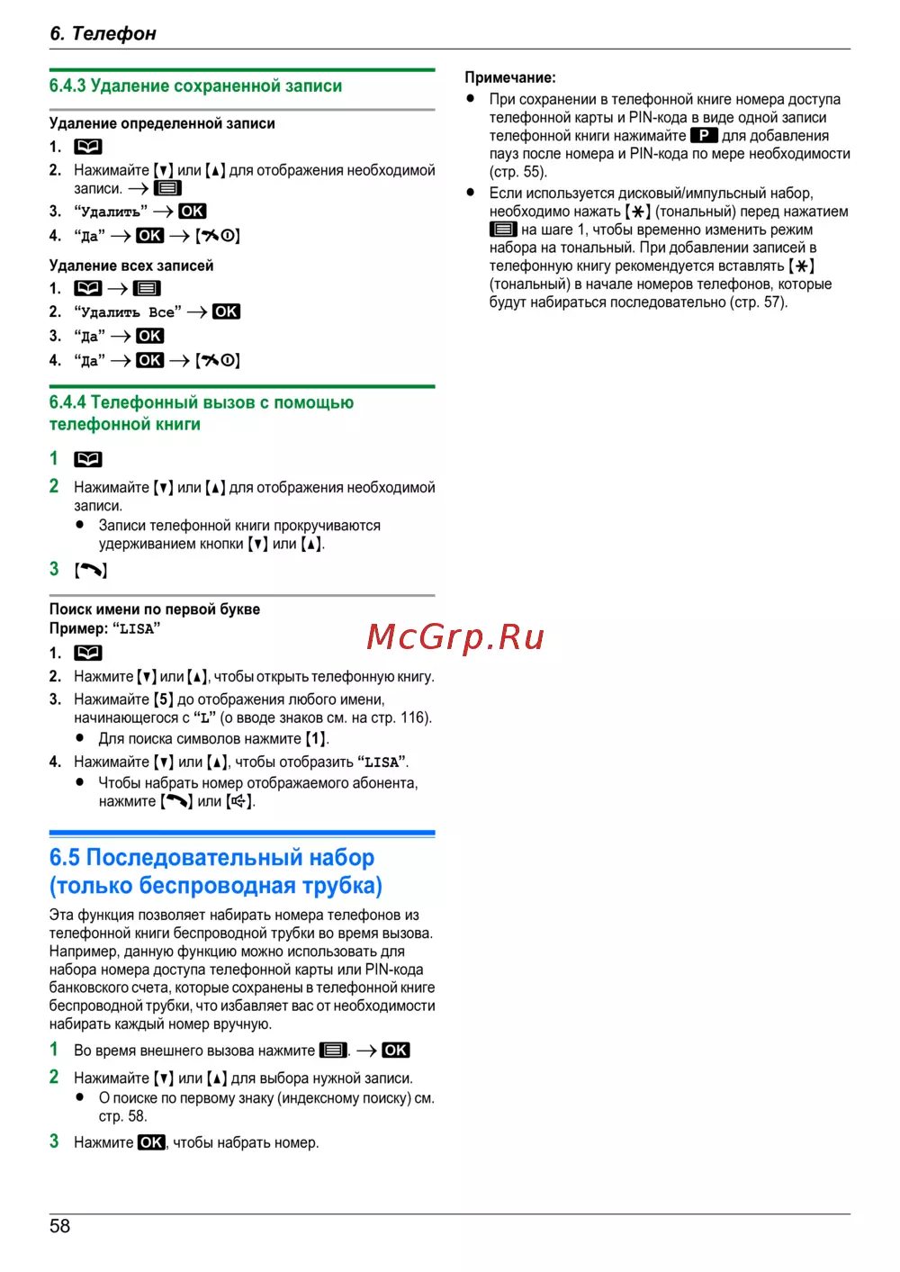 Panasonic KX-MB2051 RU — удаление записей и использование телефонной книги на устройстве [58/172]