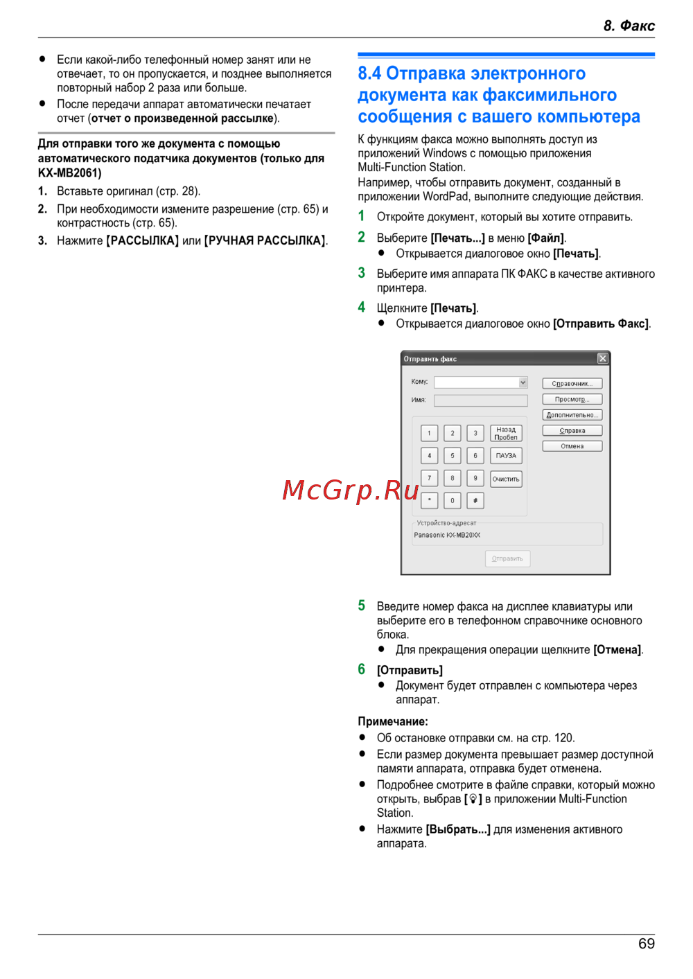 Panasonic KX-MB2051 RU — как отправить факс с компьютера: пошаговая инструкция [69/172]