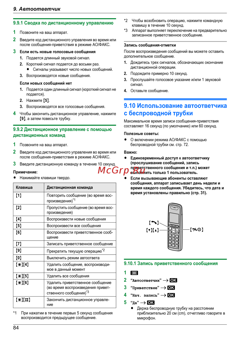 Panasonic KX-MB2051 RU — инструкция по использованию автоответчика и дистанечного управления [84/172]