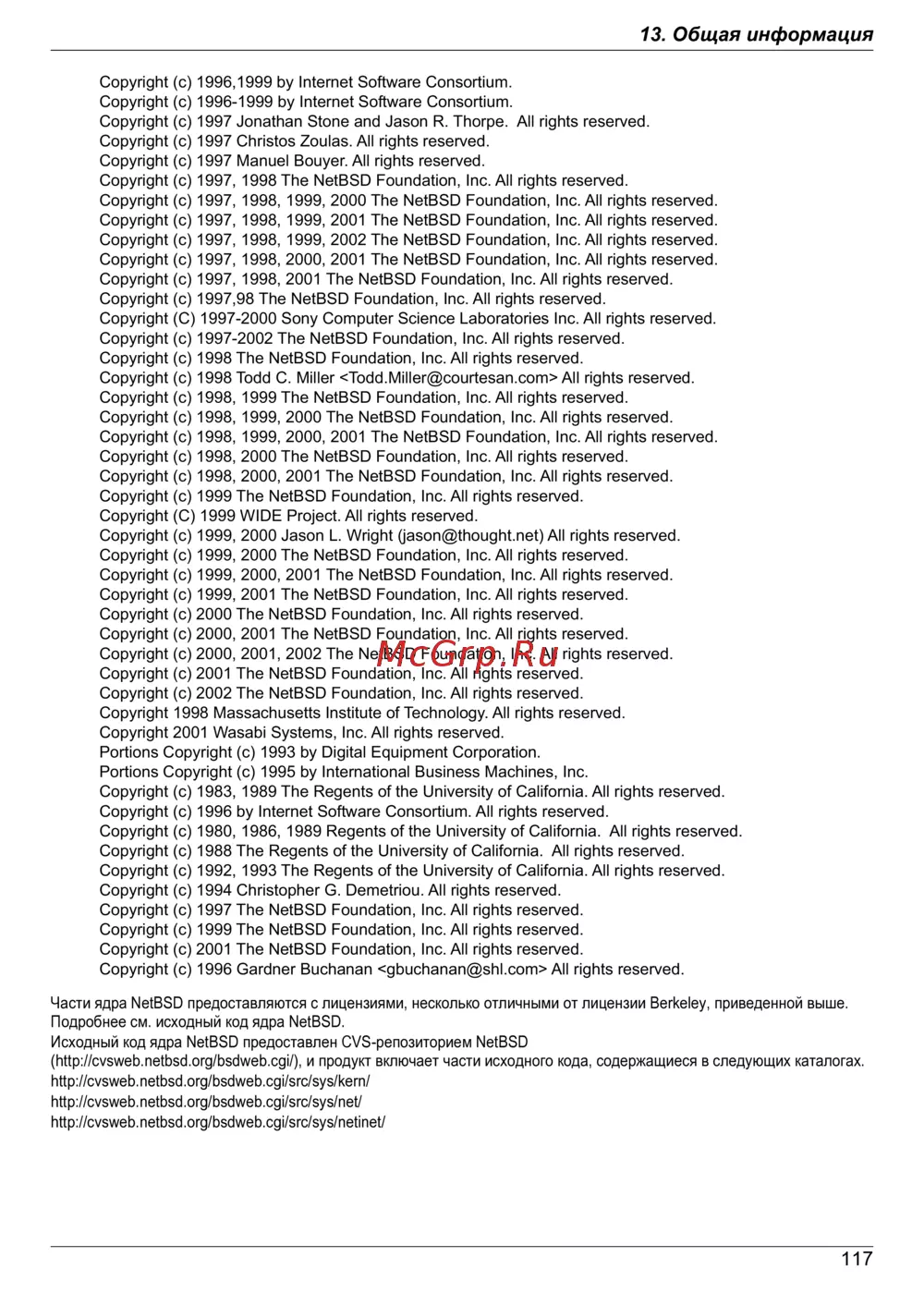 (http://cvsweb.netbsd.org/bsdweb.cgi/), и продукт включает части исходного кода, содержащиеся в следующих каталогах.