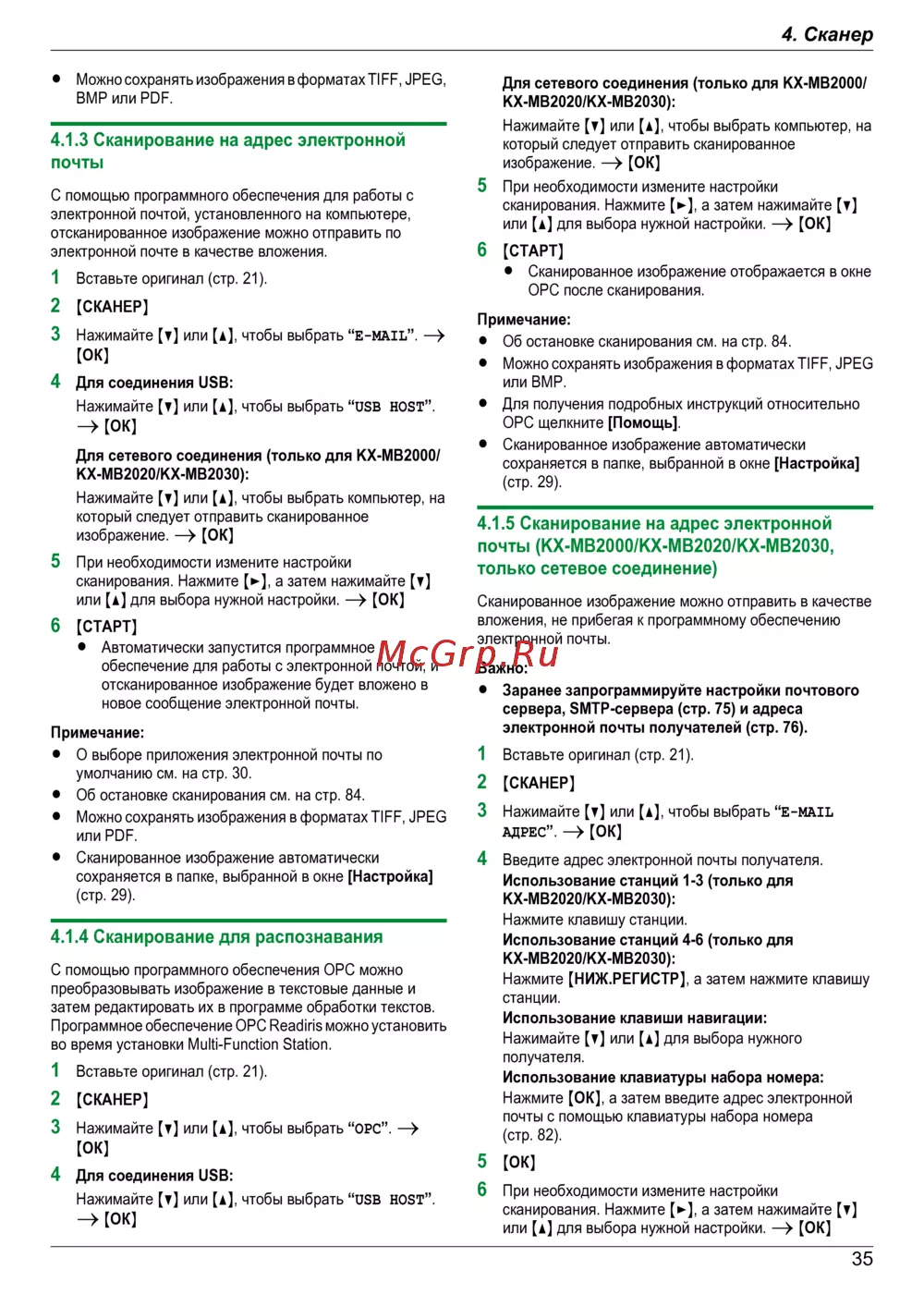 Panasonic KX-MB1900 RU [35/132] Сканирование на адрес электронной почты kx mb2000 kx mb2020 kx mb2030 только сетевое соединение