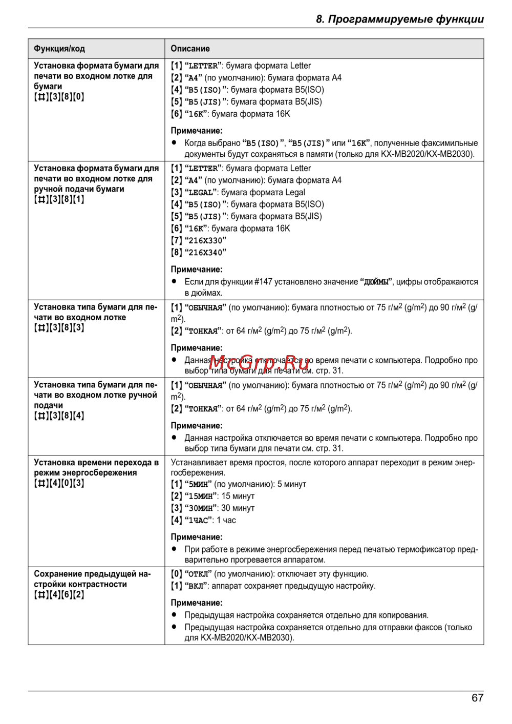 Panasonic KX-MB1900 RU — настройка формата бумаги и режима энергосбережения для печати [67/132]