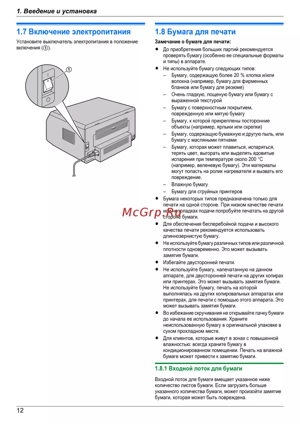 Panasonic KX-MB1500 RU [12/84] Бумага для печати